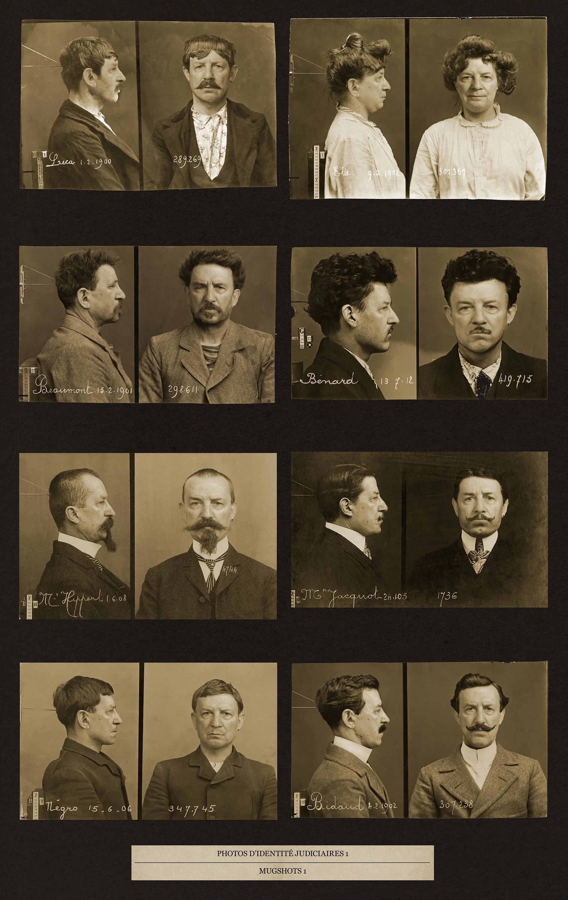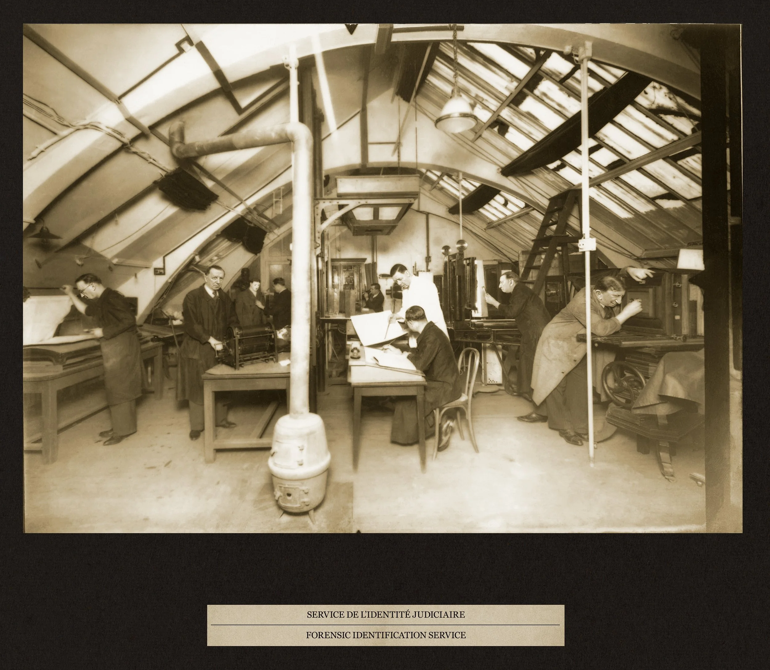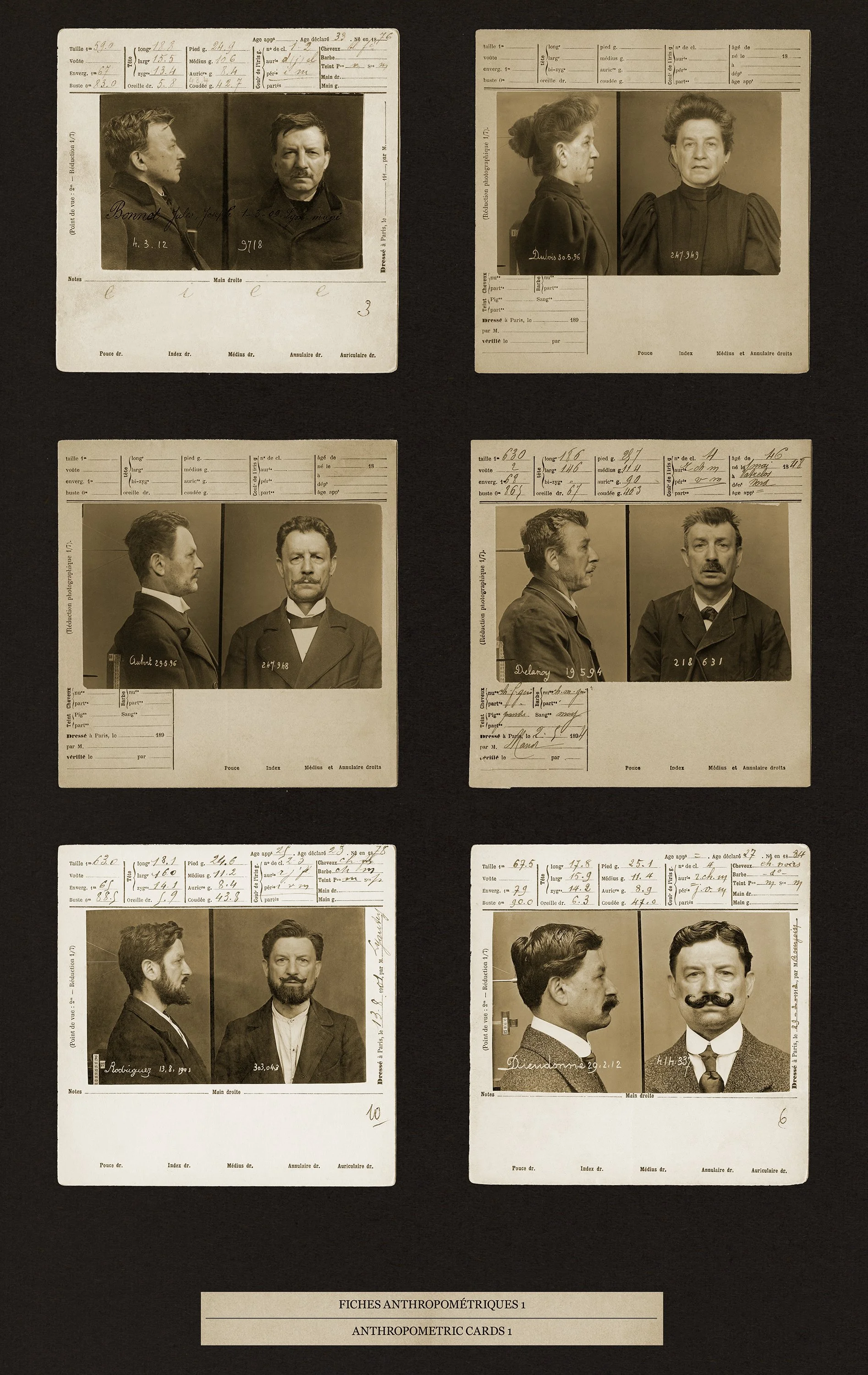 “Crime and Photography” addresses the work of Alphonse Bertillon, a police officer and biometric researcher in the Parisian police force in the late 1800s and early 1900s. Bertillon introduced his ‘anthropometric’ method (often referred to as the ‘Bertillon System’ or ‘bertillonage’ or ‘signaletics’) - a series of measurements of specific characteristics of the human body (made with the aid of specialized measuring equipment and protocols) and precise descriptions of physical characteristics (such as eye colour, scars, tattoos, etc.). These developments made Bertillon a pioneer in the use of photography in solving crimes and identifying and apprehending criminals.