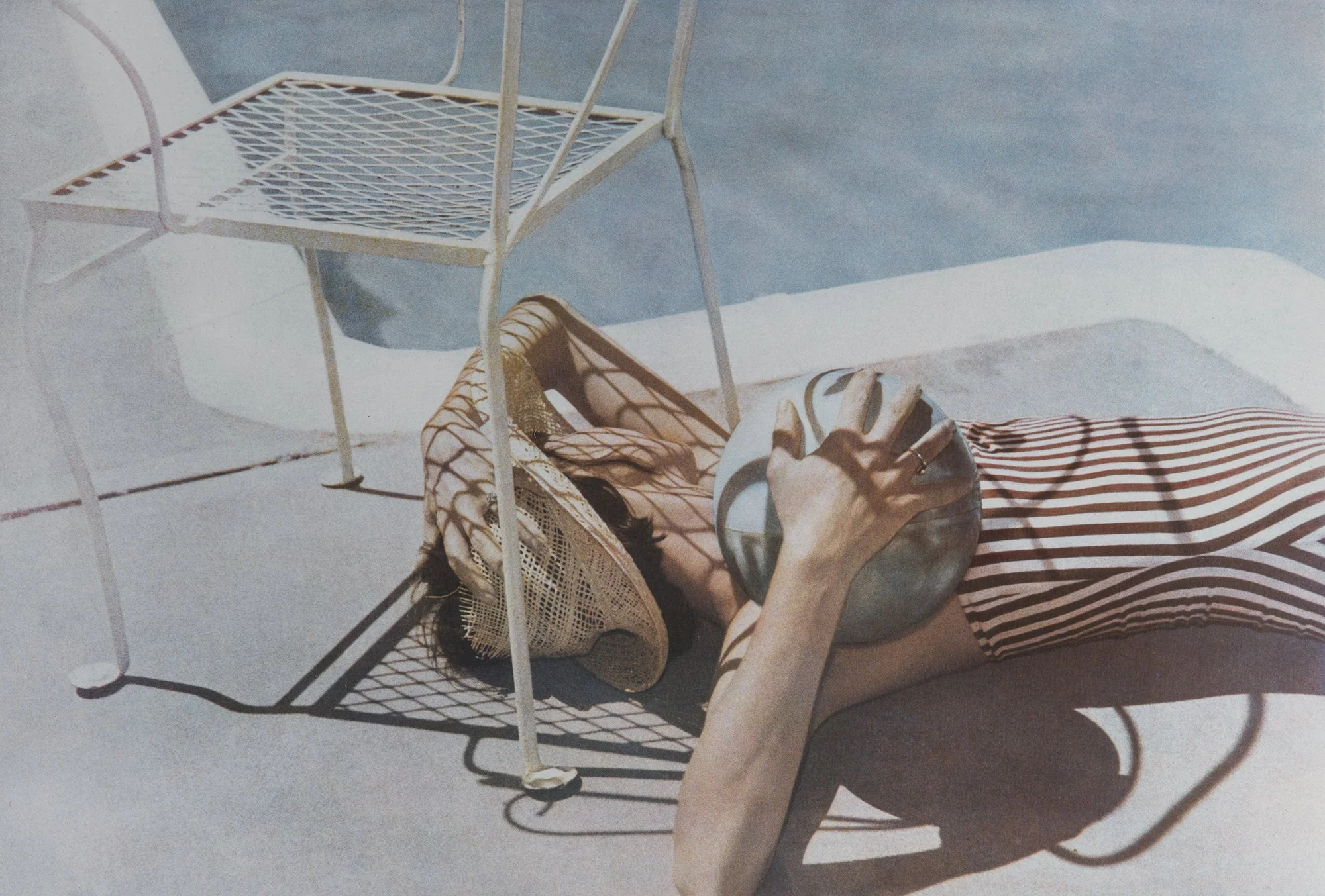 One image from Colleen Kenyon echoes the collage impulse form her sister, Kathleen. Both women are photographed behind a volleyball net; one of the sisters’ faces is partially obscured. The net applies a grid over the image, and Colleen’s coloring pigments painted over the surface of the photograph reinforces the geometric layering. Woven linen tape, a hidden structural material commonly used to bind books and display photographs, is adeptly applied on the surface of the image, right in the middle, dividing the picture into four quadrants. The impulse of constructing a picture with geometries inside the photographed scene as well applied to the surface of the print allude to Kathleen’s collage work. Colleen, so steeped in modernist photographic history and form is responding, in her own register, to Kathleen’s call.