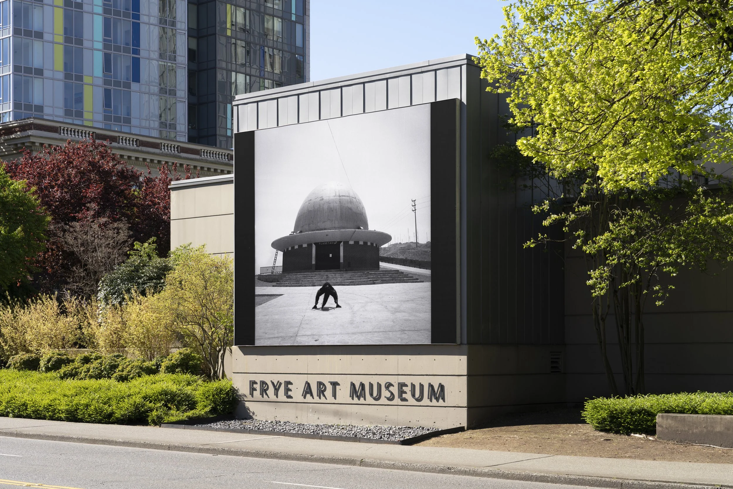Installation view of Boren Banner Series: Tarrah Krajnak, Frye Art Museum, Seattle, 2025.