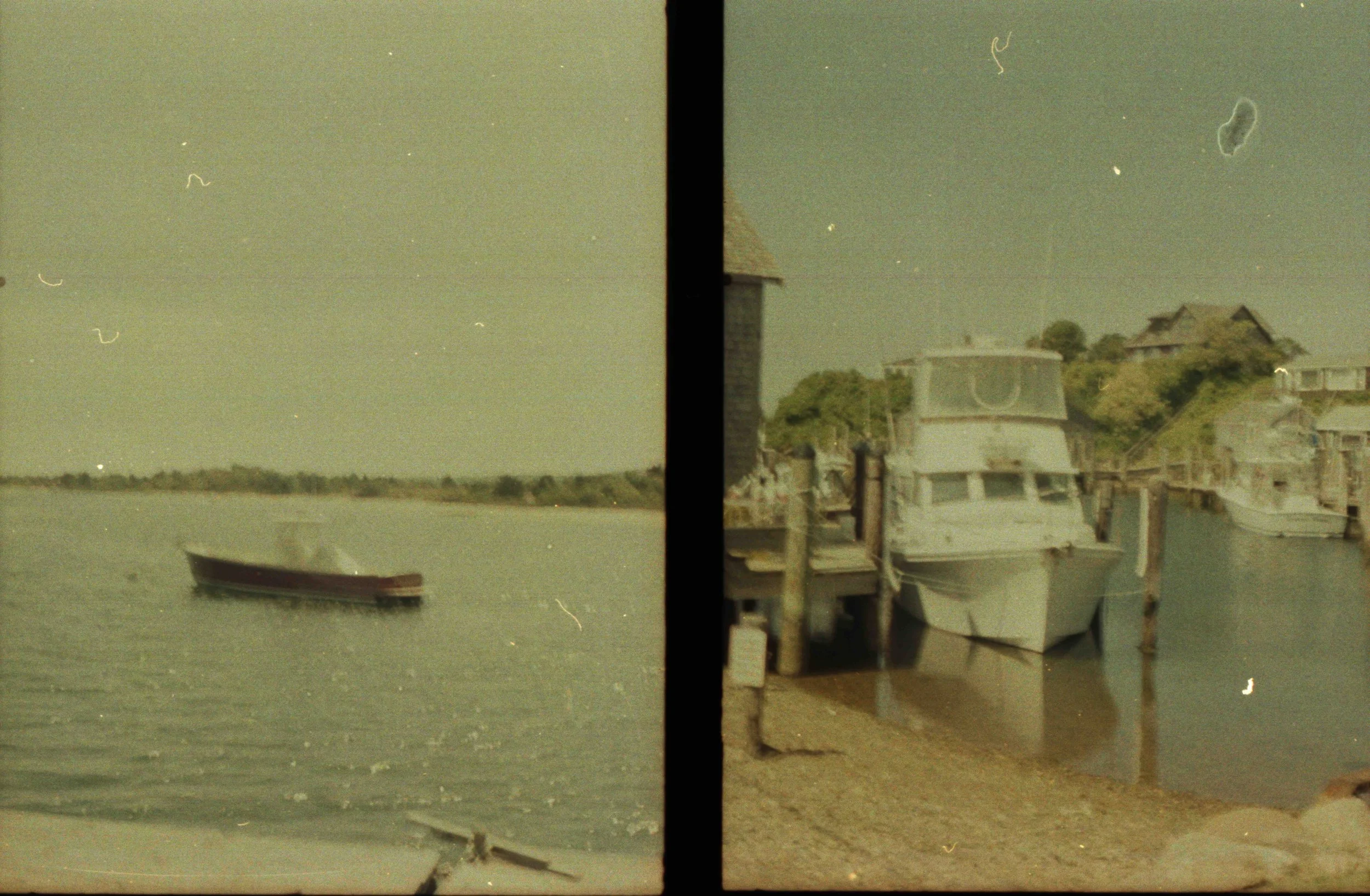 Ian John Solomon (Detroit) and McNair Evans (Richmond), share a connection in their work to memory and geography. Their photographs document personal history and use the camera as a tool to find community, creating a sense of being rooted in the world through images. Solomon is included with photos exploring family history that emerge from a deep study of place. “Camp Van Dyke” (2024), for example, is a distorted print fusing two images: a brick country home near where his late grandparents lived on Detroit's East Side and Michigan's tree-covered northern landscape. This intentional layering of place repeats in “Cowrie 35.98451 degrees N, 78.7880 degrees W (Bass Plantation)” (2025), where the background landscape—now present-day North Carolina—traces back to his ancestral lands, and the glistening cowrie shell held high in the artist's hand is like an act of reconnection.
