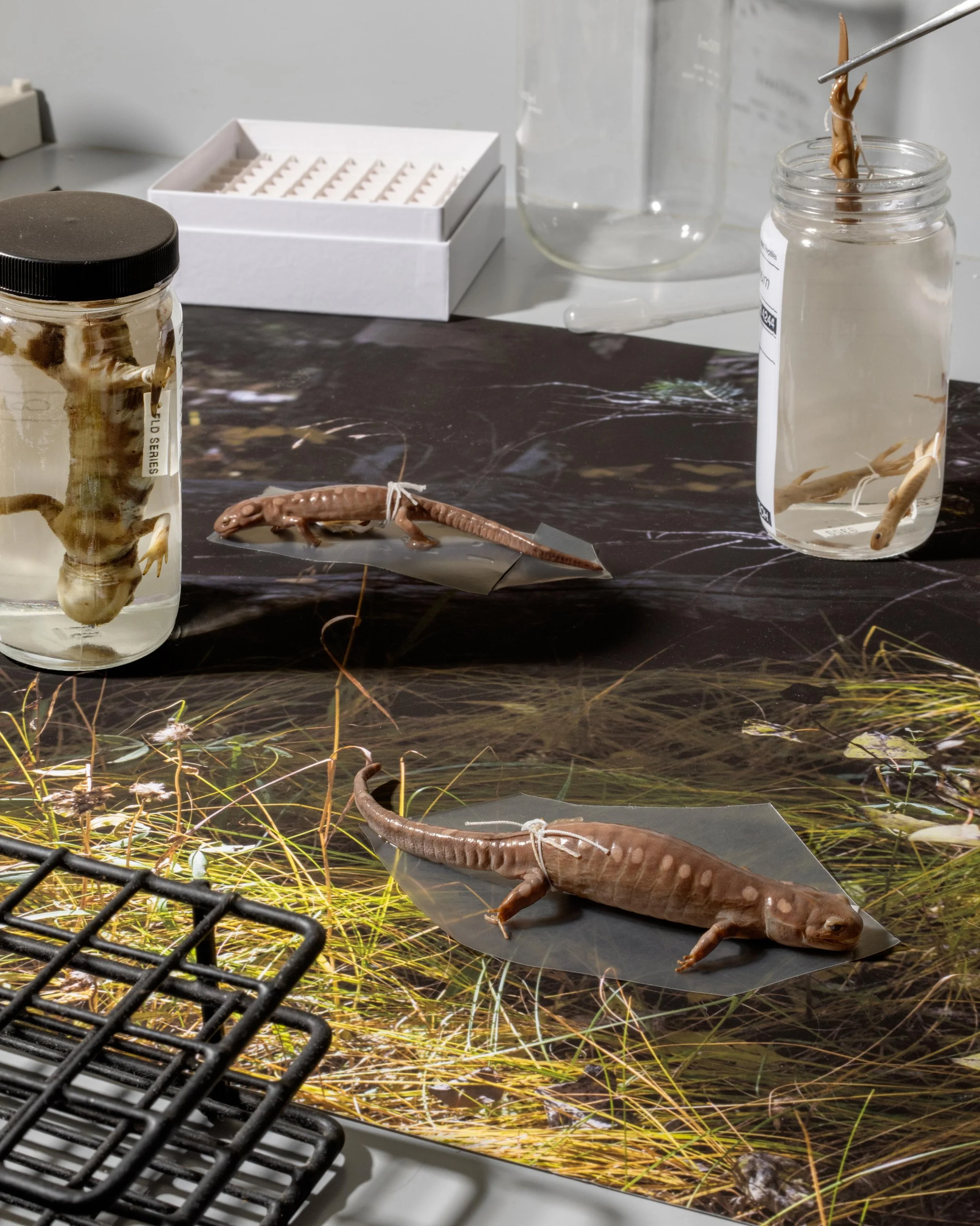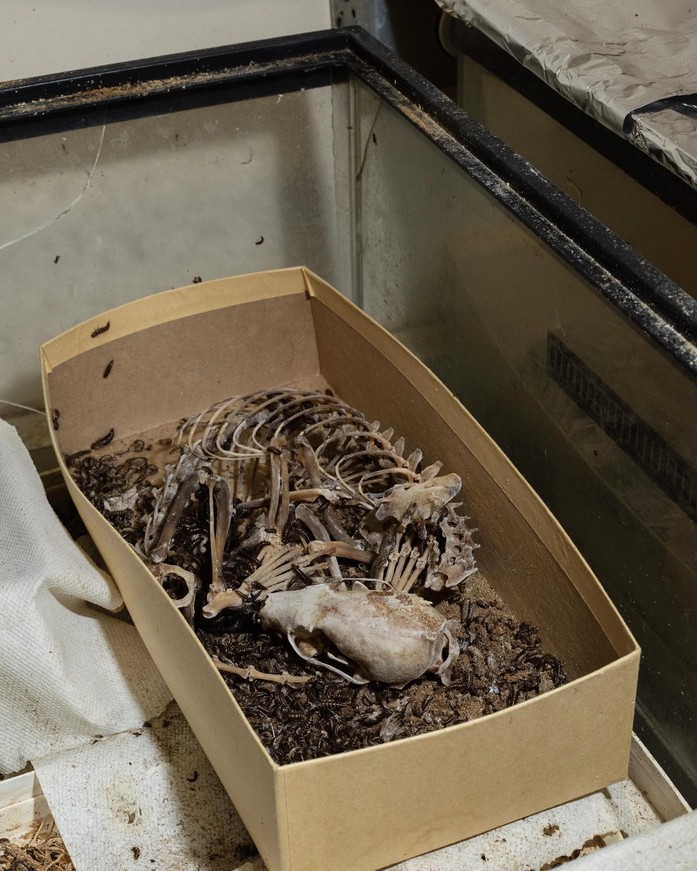 Like photography, animal preservation distorts time and creates an approximate experience. Collections in natural history museums and research facilities speak to our human desire to draw nature closer and to create encounters with animals. From our awkward place existing both within and outside of the natural world, we long to be connected with the things we are destroying. The fact that the animal must die in order for us to learn from it and witness it in proximity is a twisted irony. With my camera, I seek to fulfill my urge to witness nature in proximity, as well as question my desire for that proximity. Both in terms of large format film photography and animal specimens, this work is about things slipping away and our gestures to hold on.
