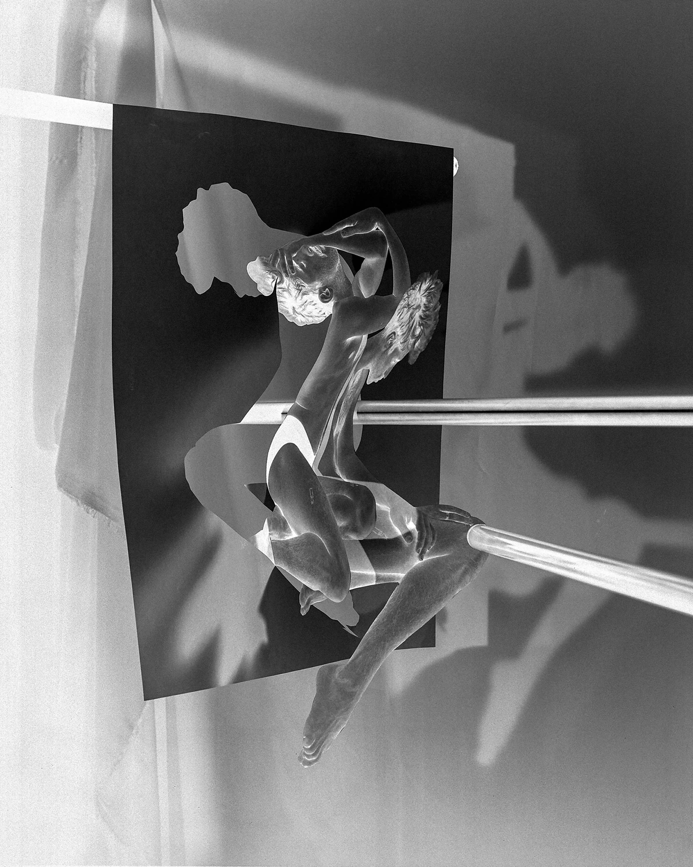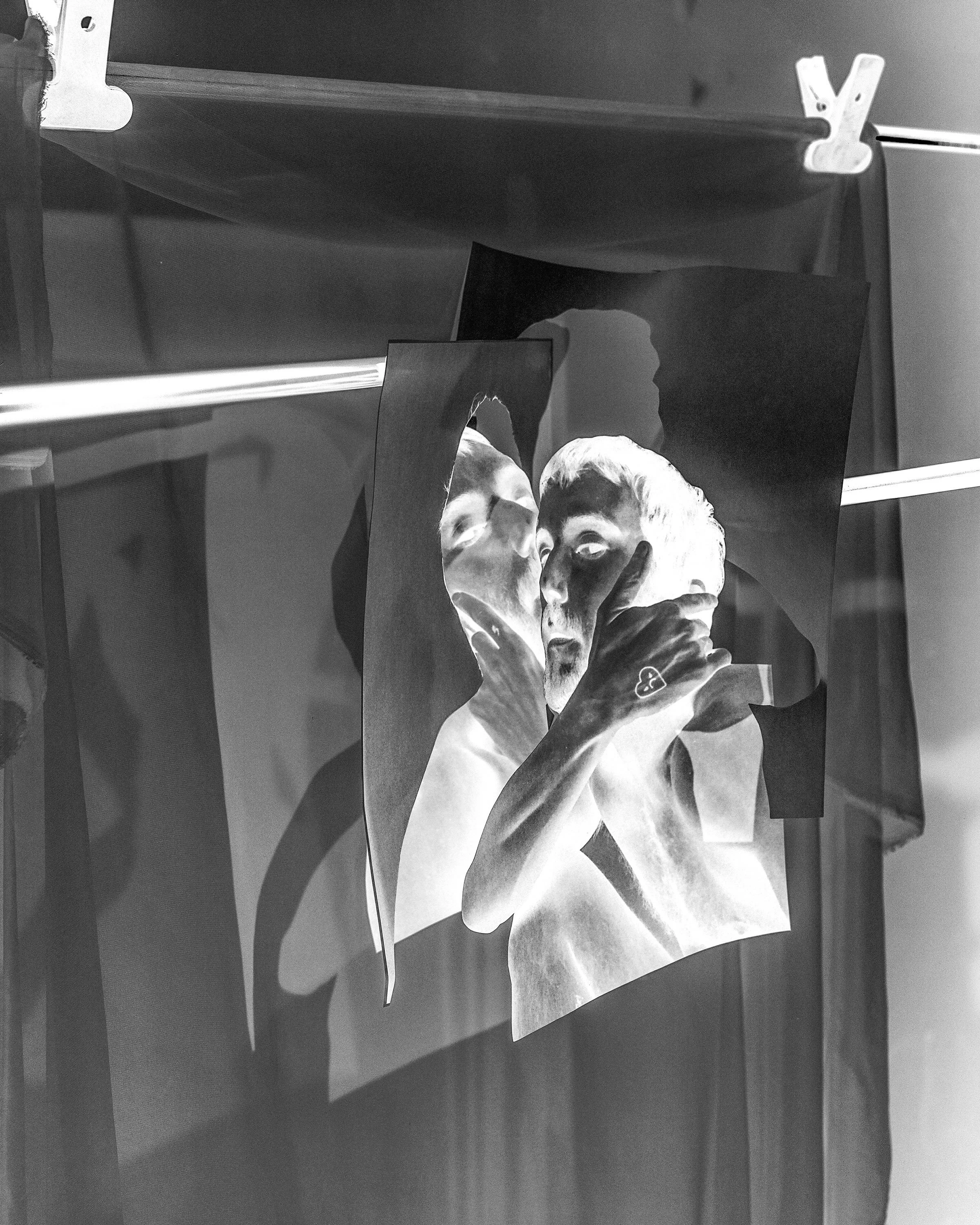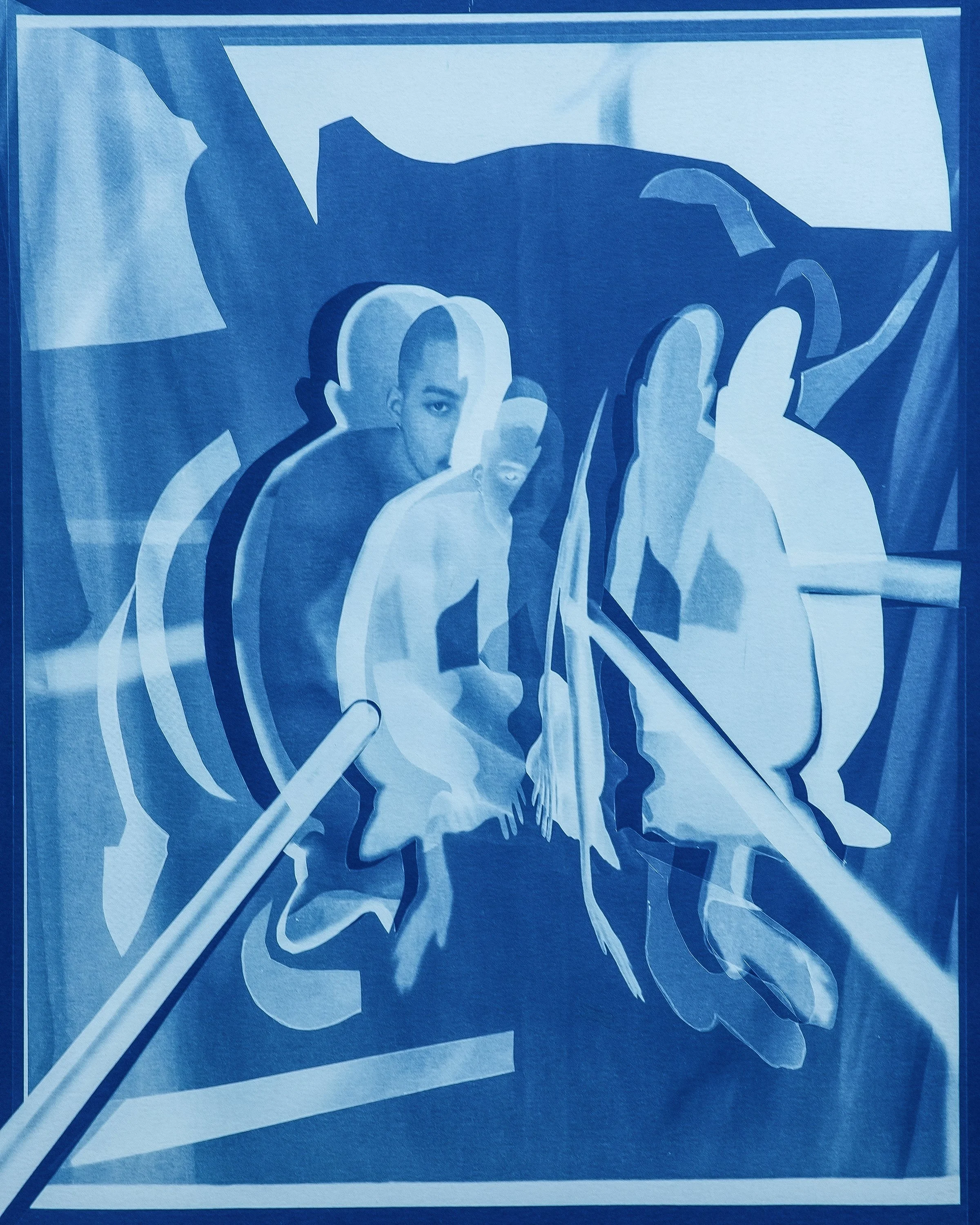 The result is my contemporary reimagining of the possibilities of portraiture through the absence of it, which draws upon early photographic experimentation with cut paper, negatives, photograms, abstraction, and cyanotype printing such as in the work of Man Ray, Laszlo Moloy-Nagy, and Francis Bruguiére. The works skew abstract and invite the viewer in to have a deeper look and contemplate the dynamic interplay between image and shadow, as well as the simultaneous reveal and conceal. It asks people to look beneath the surface and to question further the subject and what’s being presented. Reverting my images back to their negative form highlights their photogram-like quality and also abstracts the images even further.