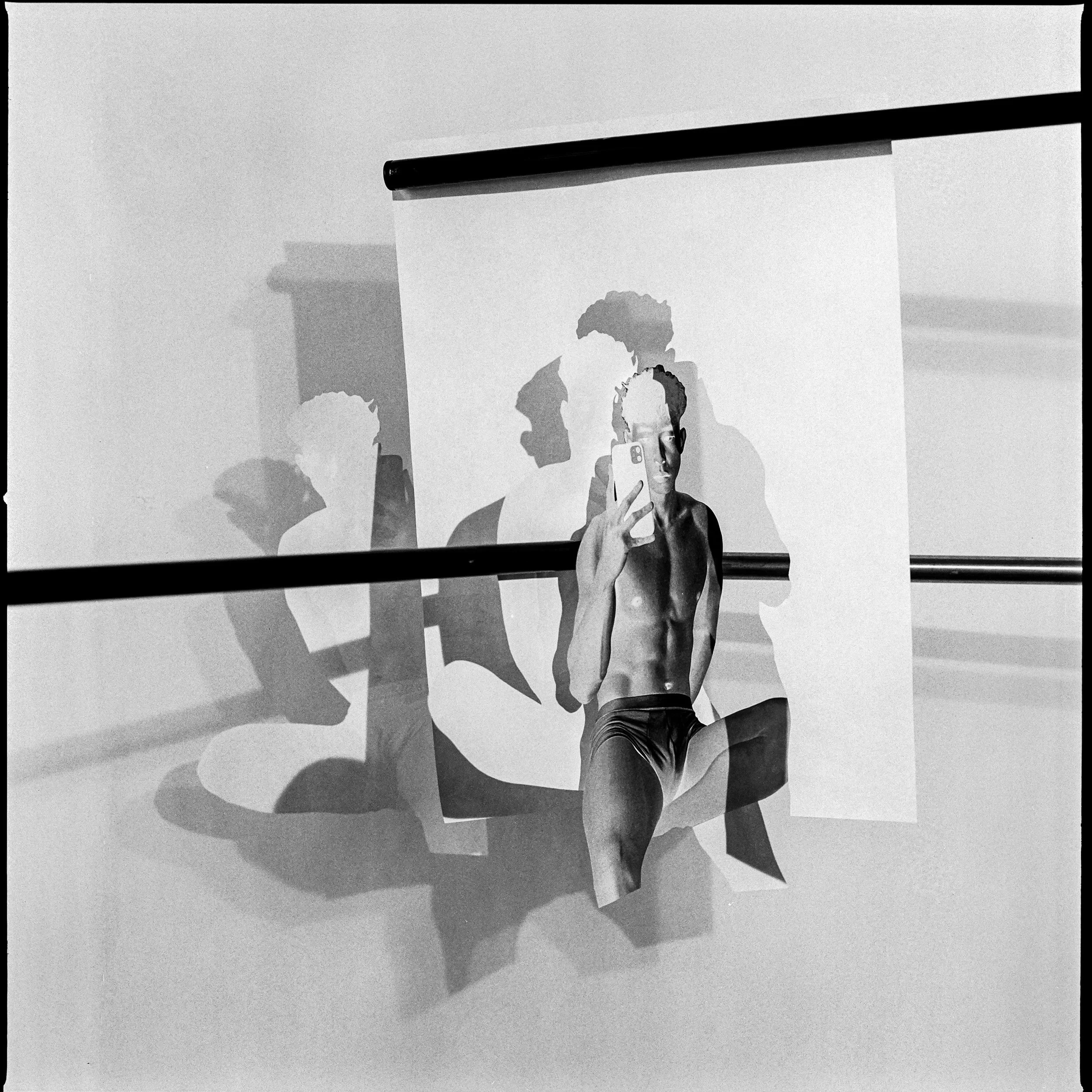 Beginning in Nov 2020, this ongoing body of work draws upon my prior method of studio portraiture to construct abstract compositions that are a dynamic play of light/shadow. These pieces push my photography into territory that melds the processes of other mediums including collage, and print.