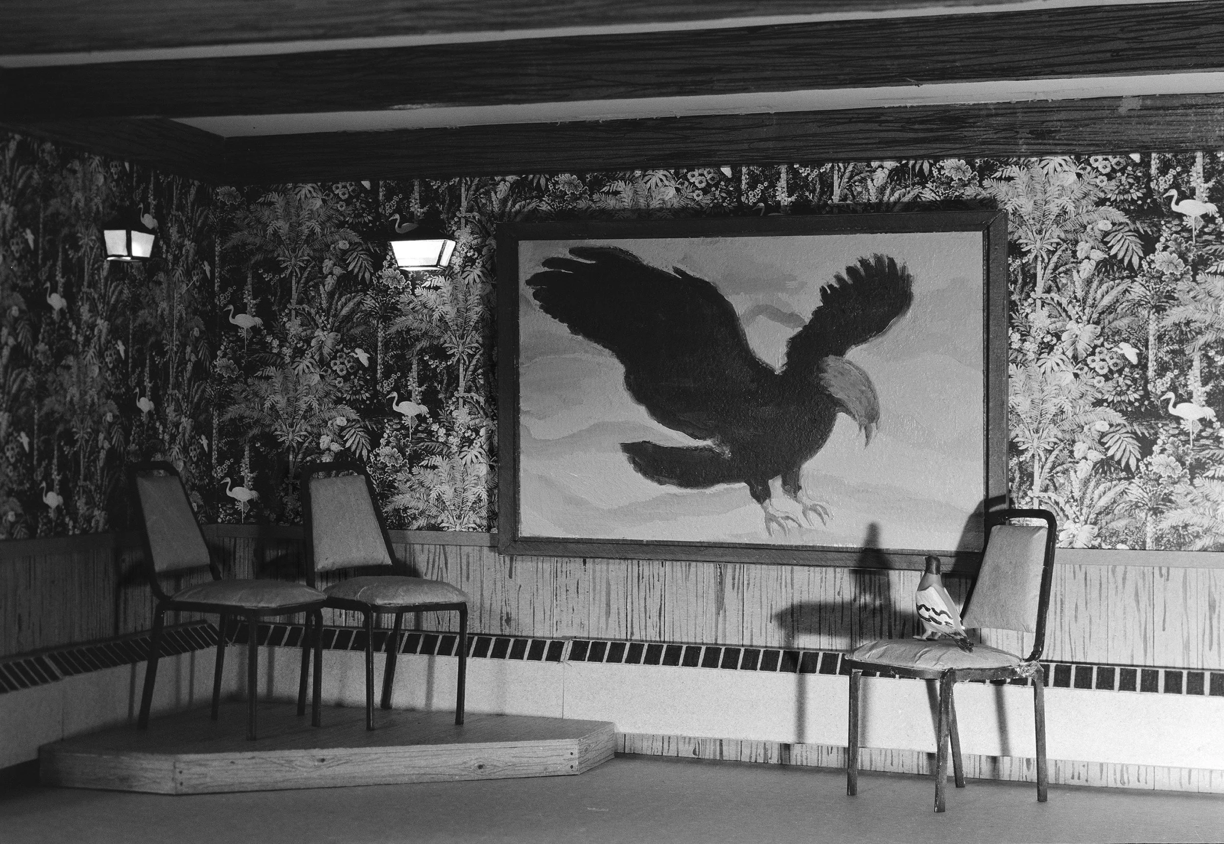 Each photograph begins as a hand-built model, constructed from humble materials like cardboard, tape, and hot glue; unsophisticated materials that retain a certain cogency and drabness when captured in a photograph. These unpretentious components aid the viewer in feeling the uncanniness in the picture. By assembling scenes from both observation and imagination, I’m attempting to excavate the quiet magic of the mundane—to reveal how even the most overlooked spaces are shaped by human folly, fantasy, and desire.