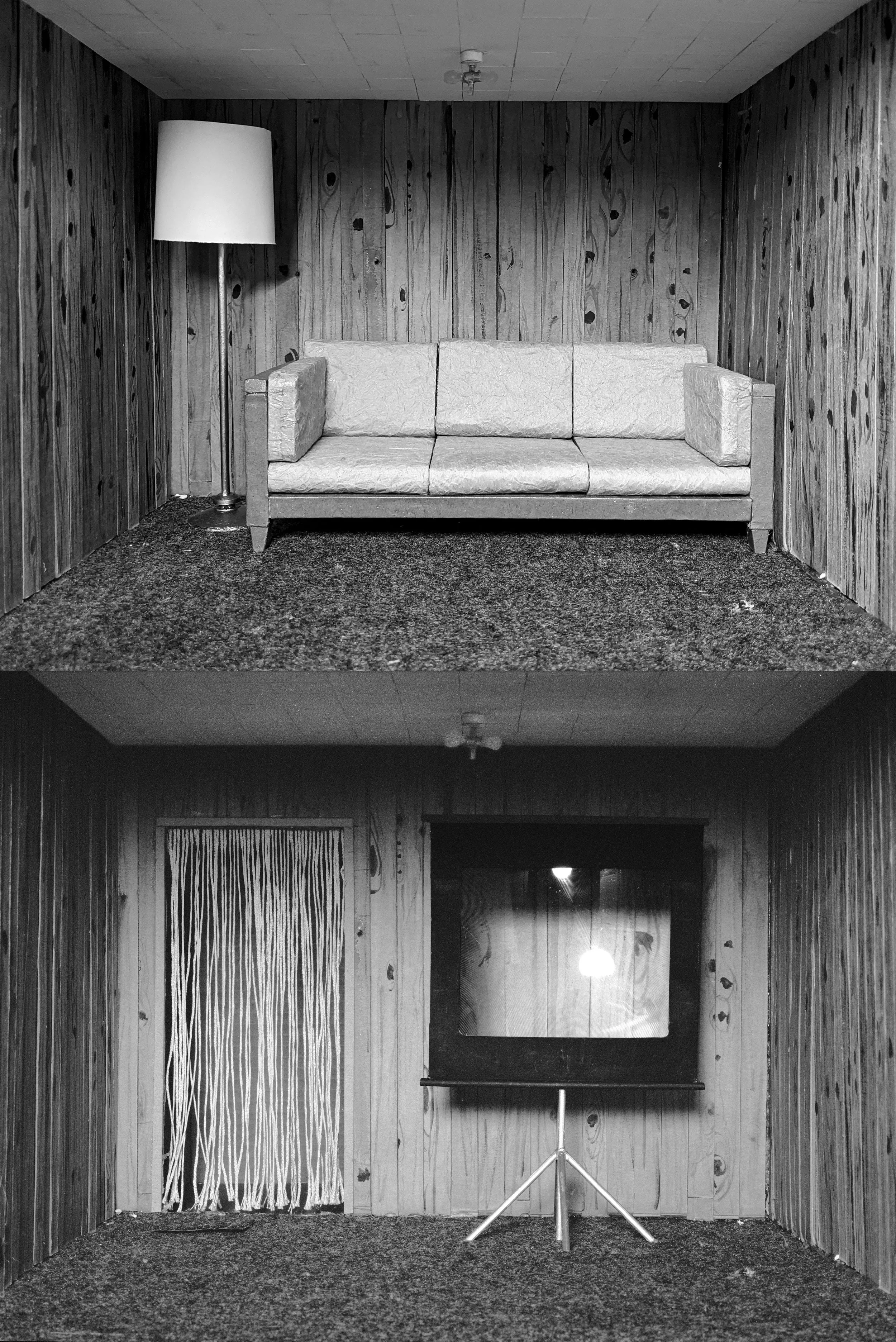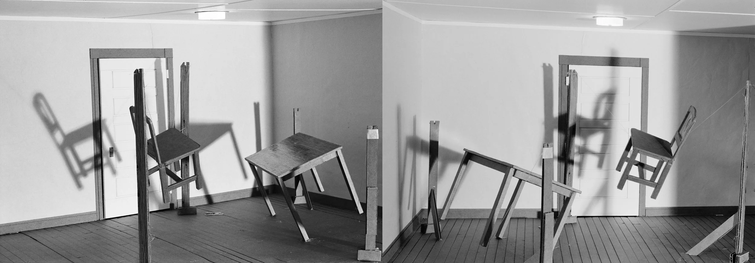 “Real Spaces”, is a series of images that reimagines the interstices of domestic and urban spaces with nods to the history of photography. Contrasting photographic imposters with contrived images, this series consists of models that portray similar subjects explored by renowned photographers such as Gordon Matta-Clark, Lee Friedlander and Robert Adams, and Lynne Cohen. The task of building a model to emulate an existing image, and then photographing it becomes absurdly humorous, as it attempts to mock reality. Juxtaposed to these reproductions are pure invented structures, modeled after my own drawings. By contrasting replicas of previously photographed places with concocted ones, I’m subverting attention and unraveling truths. The fantastical and the conventional blend, making the ordinary, extraordinary.